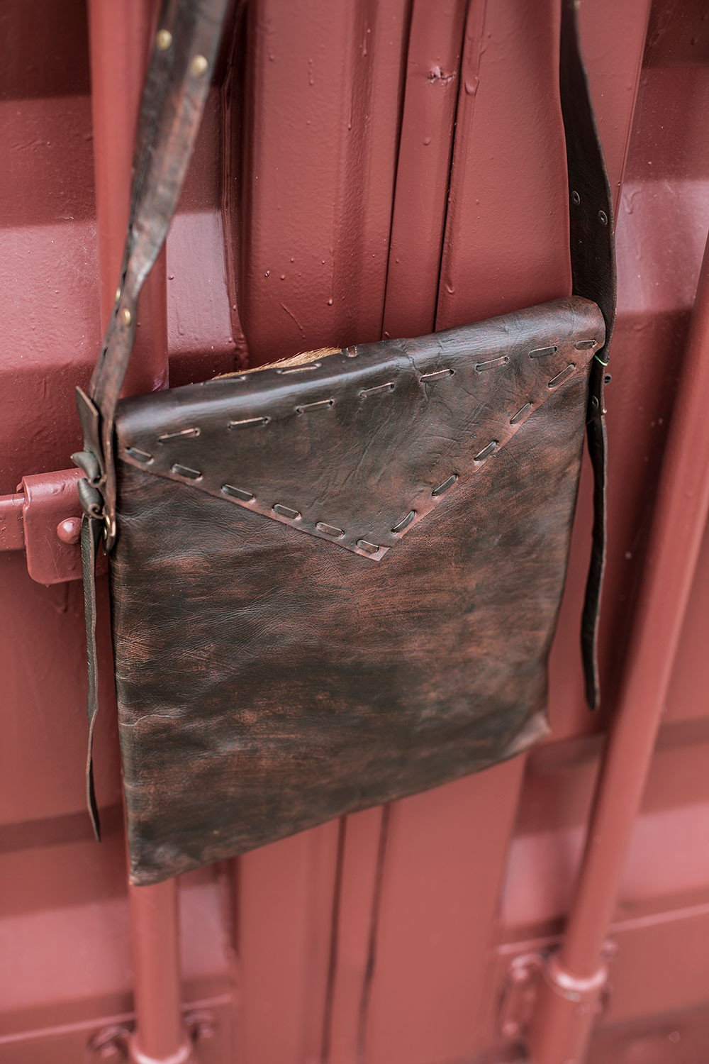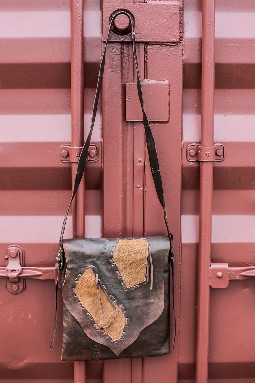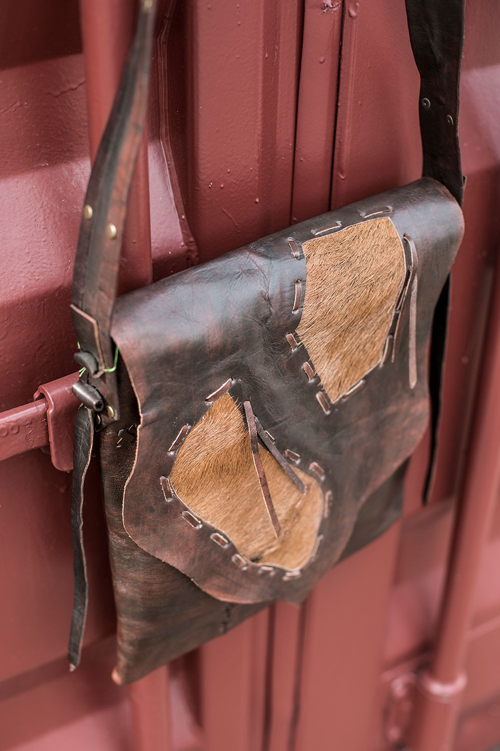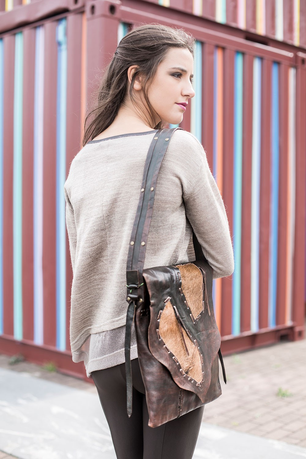 Bolso bandolera de piel con detalles de pelo de potro.