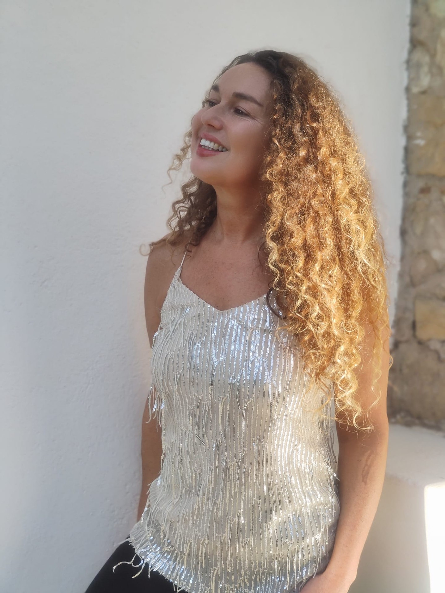 ESTRELLA, TOP CON LENTEJUELAS Y FLECOS